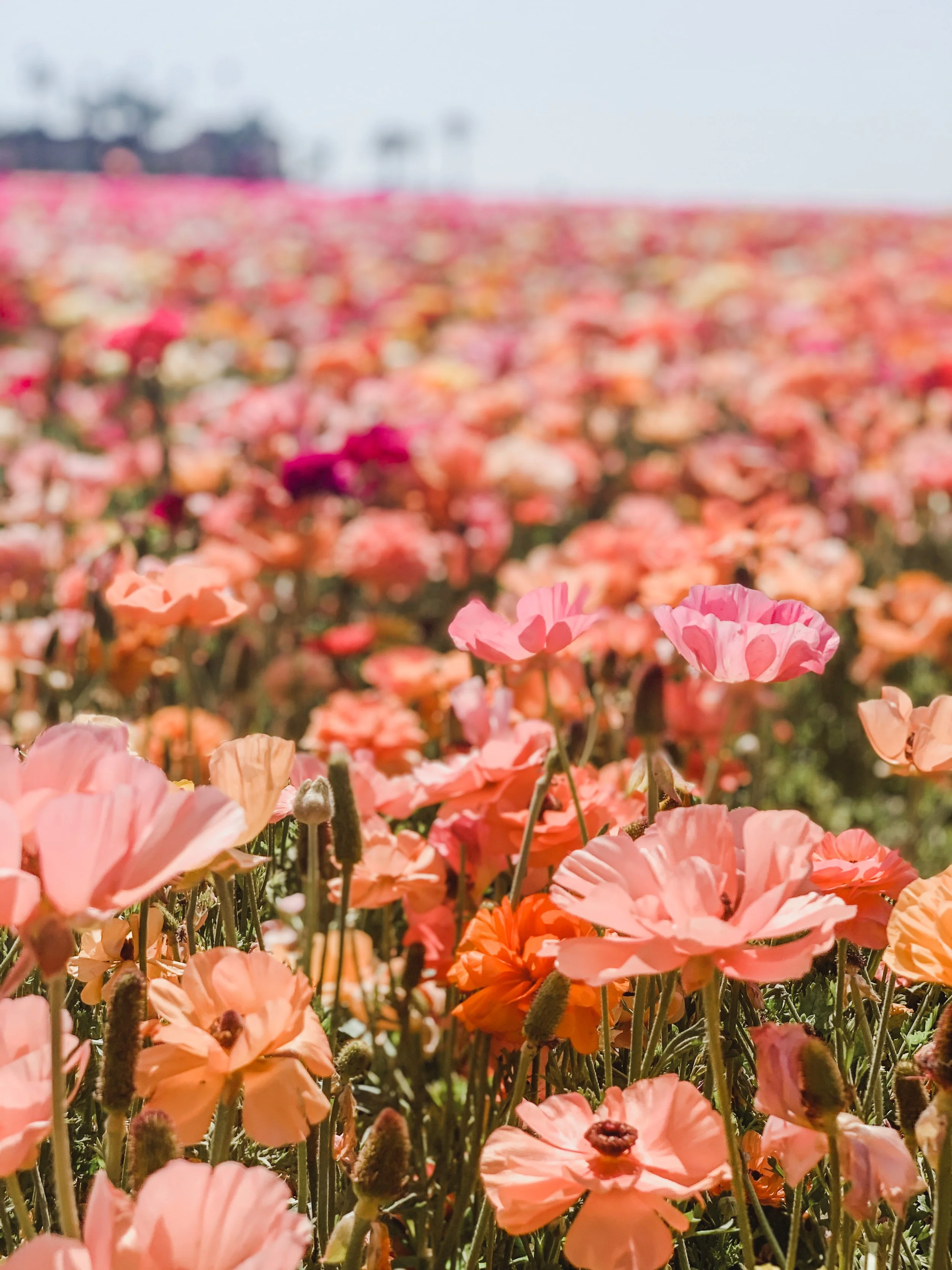 The Carlsbad Flower Fields are one of my all time favorite places located in Carlsbad California. These flower fields are up on a big hill where you can see the horizon of the ocean at a distance. The blooms each year are around mid-March to mid-April, obviously dependent of the weather. We like to go when they first open because of less crowds and better lighting. However, they do require ticket reservations that can be placed on their website and the early slots fill up quickly. We happened to book our tickets when the flowers were in “Full bloom” that only happens every few years.. and it was stunning. It was like a sea of colorful ranunculus & poppies and I’m so thankful to have witnessed it. Please enjoy all these photos we collected during our time there!